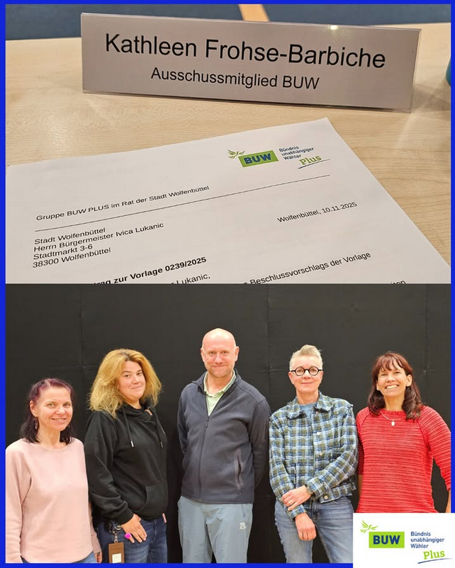 Die Gruppe BUW plus weiß, dass die Verwaltung unsere Punkte mitdenkt, aber Aufgrund bevorstehender Kommunalwahlen und daraus eventuell resultierender Umstrukturierungen möchten wir unsere Punkte gerne schwarz auf weiß fixiert haben.