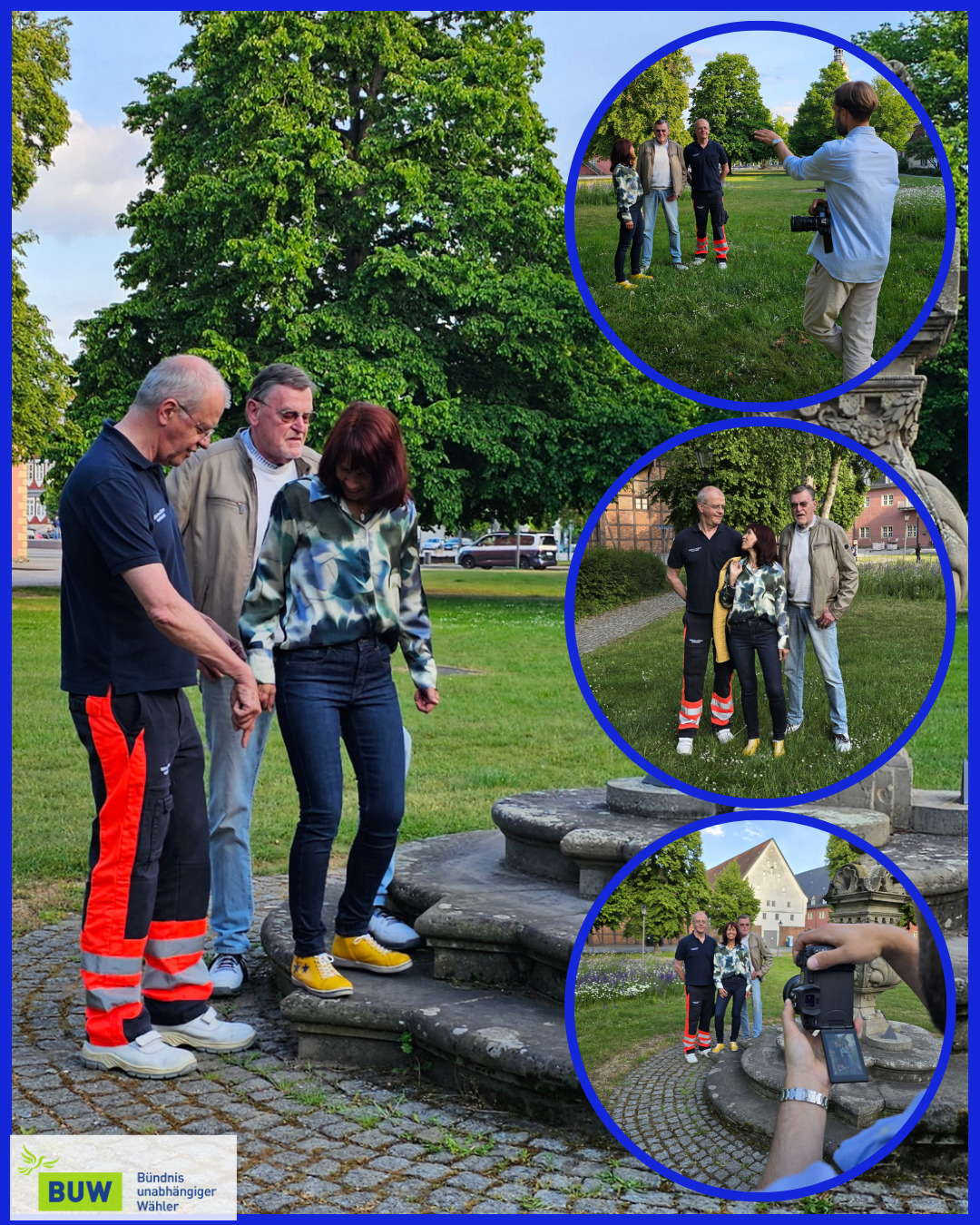 Unser Vorstand, Alexandra Tomerius, Ulrich Heida und Franz Hörst zeigten sich als Team, als es darum ging sich zu positionieren, um die Größenunterschiede auszugleichen.