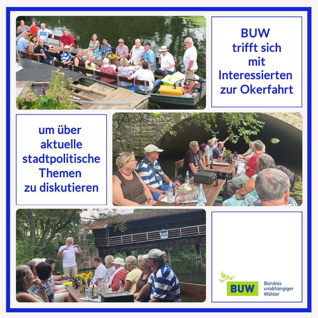 Bei bestem Sommerwetter steuerte Okerpirat Michael Stier seinen Spreewaldkahn durch die idyllische Flusslandschaft und wusste Interessantes zum Fluss selbst, zur Umgebung und zur Geschichte Wolfenbüttels zu berichten.